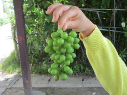手に持ったものを見せ、「ブドウが落ちていた!」と、興奮しています。