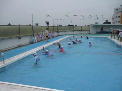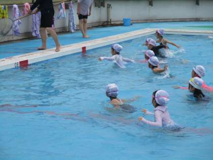 今日は薄曇りですが、湿度が高くムシムシするので、子どもたちはプールに入ってとても気持ちよさそうです。