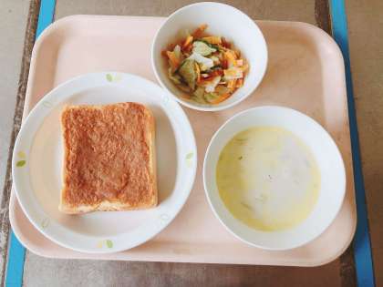 きなこバタートースト パリパリサラダ ポテトスープ 牛乳
