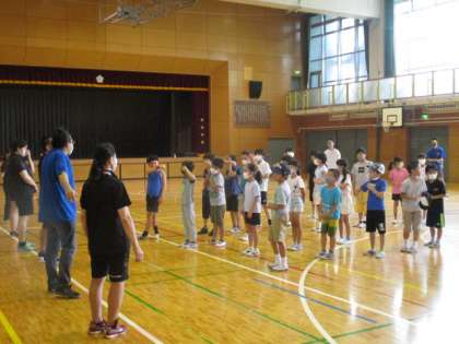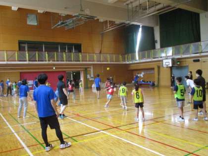 上の学年になると、どうしたら相手を当てることができるかを考えてパス回しをします。