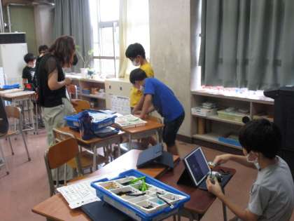 パソコンクラブでは、「WeDo」を使ってプログラミングをしていました。