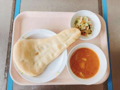 ナン バターチキンカレー ごぼうチップサラダ 牛乳