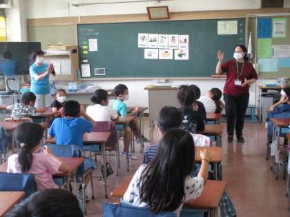 2年生では、ALTの先生と一緒に外国語の学習をしていました。