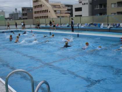お日様は出ていませんが、とても蒸し暑いので、子どもたちからは、「気持ちいい。」という声が聞こえてきました。