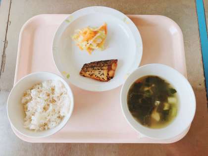 ごはん 魚の南部焼き 和風サラダ 中華スープ 牛乳