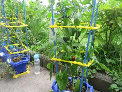 見えにくいですが、2枚目の写真にはたくさんのピーマンがなっています。