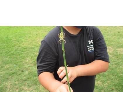 3枚目の写真は、5年生がビオトープで見つけた大きなクモです。