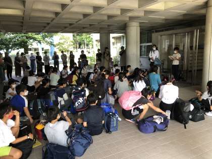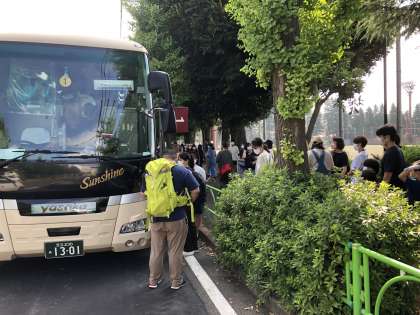 お見送りにいらしてくださったたくさんの保護者方々に見守られ出発式を行いました。