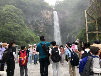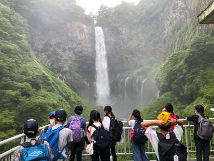 子どもたちは、華厳の滝の迫力に見とれていました。