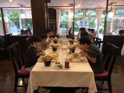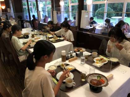 日光での最後の夕食、子どもたちは楽しそうに食べていました。