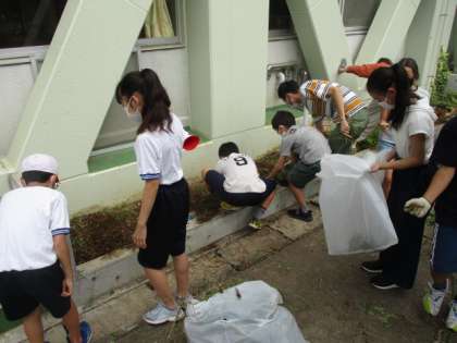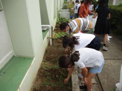 中休み、環境委員会の人たちが、花壇の整理をしていました。
