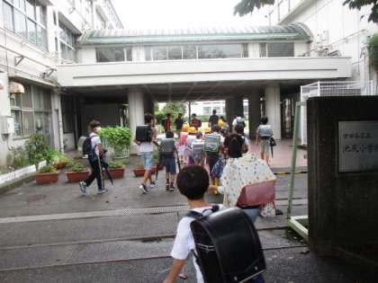 心配していた台風の雨風は、8時前はどしゃ降りで心配だったのですが、子どもたちの登校の時刻には、雨があがり、かさをささずに登校することができました。
