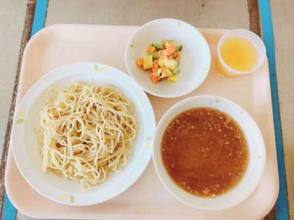 みそつけめん さつまいもサラダ オレンジゼリー 牛乳
