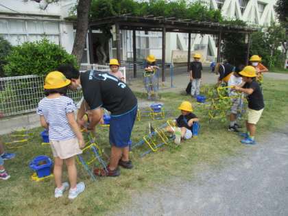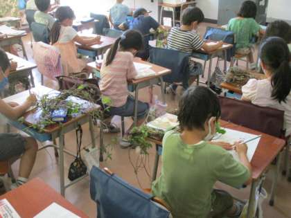 1年生は一人ひとり育てていたアサガオを使ってのリース作りをしています。