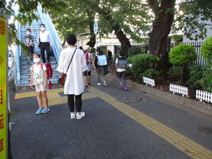 今日も保護者の皆さんが通学路に立ってくださっています。