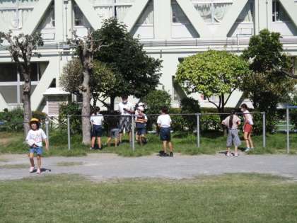 ボール遊び、おにごっこ、縄跳びなど、みんな思い切り体を動かしています。