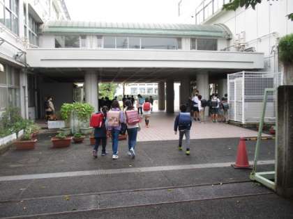 土曜授業日、子どもたちが登校してきました。