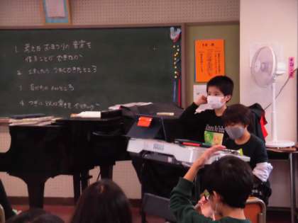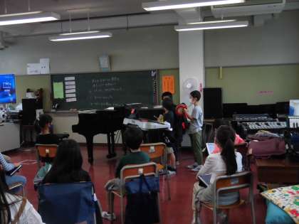自分たちで考えた「お祭りの音楽」の発表会です。