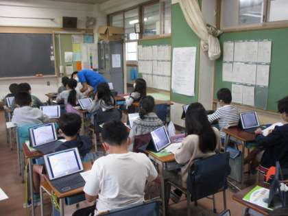 1組の授業は社会です。