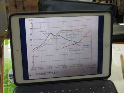 スーパーマーケット・コンビニエンスストア・デパートの売上高を比べて、発見したことなども発言していました。