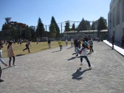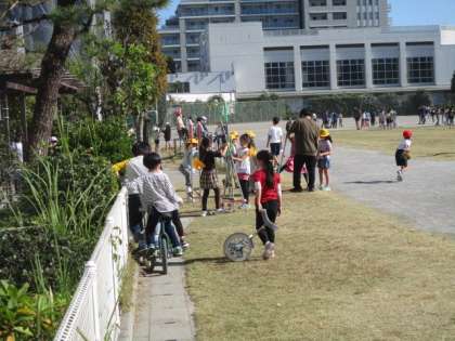 ボール遊び、鬼ごっこ、一輪車、竹馬など子どもたちは元気いっぱいに遊んでいます。