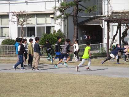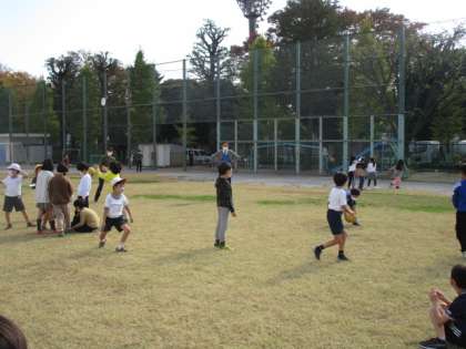 ボール遊び、オニゴッコなど広い校庭を走り回っています。