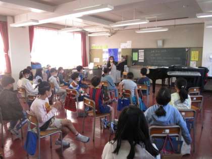 1組の授業は音楽です。「茶色の小びん」の曲に合わせたボディーパーカッションです。グループごとに考えた動きは、リズムの違いなどそれぞれ特徴があり、見ていてとても楽しくなります。1組の2組も学校公開でお披露目する予定なので楽しみにしていてください。