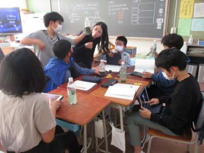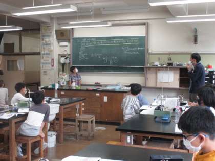 5年生の授業は理科です。流れる水のはたらきの学習です。