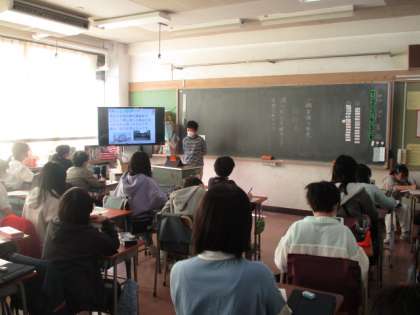 1組の授業は総合です。「職業調べ」の発表です。子どもたちは自分で決めた職業について調べ、タブレットを使って発表しました。聞きなれた職業の意外な一面を知ることができました。