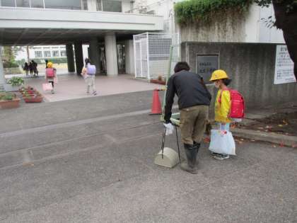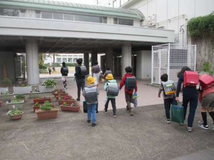 今日は風が強く、手が冷たく感じます。子どもたちが登校してきました。