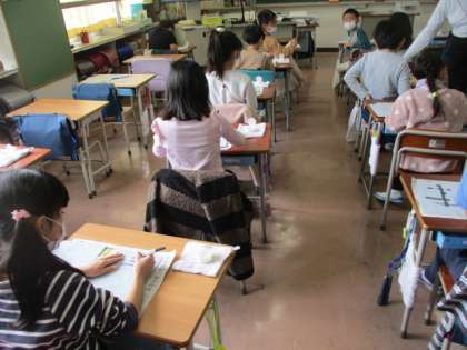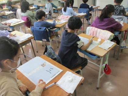 子どもたちは、普段とは異なる書き具合を楽しんでいました。