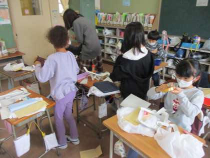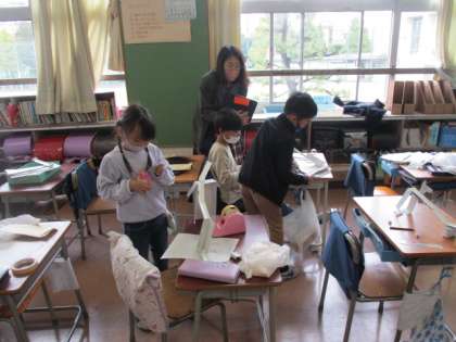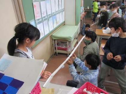 1組の授業は生活科です。「つくって あそんで くふして」です。