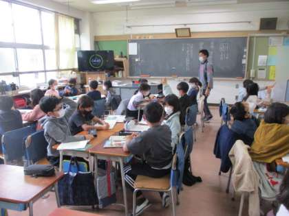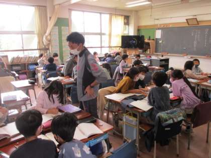 1組の授業は国語です。単元は「はんで意見をまとめよう」です。