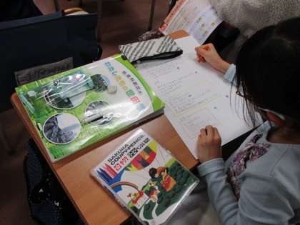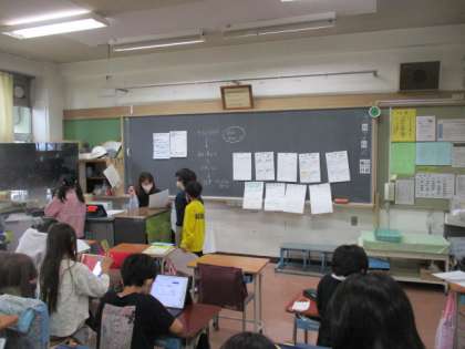 2組では、スーパーマーケット見学のまとめをしていました。画用紙に一人ひとりがまとめています。題字や枠のある用紙 枠取りだけのもの、何も書いていない白紙の画用紙などから、自分で用紙を選んで書いています。さすが3年生、伝えたいことが強調されるよう工夫して作っています。
