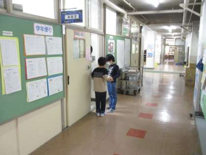 担任の先生に頼まれたのでしょう。3年生が事務室に道具を返却に来ました。