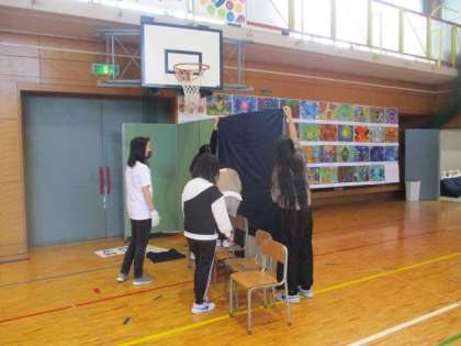 体育館では6年生がいろいろなところの飾りつけなどの準備をしてくれていました。
