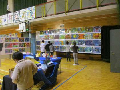 作品に近づきすぎないよう気を付けて鑑賞しています。鑑賞カードには、書ききれないくらいお気に入りの作品を見つけている人もいました。