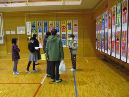 保護者鑑賞の時間、6年生が「子どもガイド」として、作品の説明をします。
