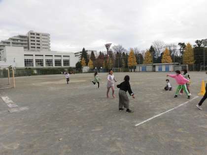 6年生は一足先に、広い校庭遊びは25日(金)に行いました。