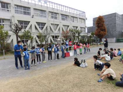 5時間目は3年生です。まずしばっちとつっちーをくっつけてとても大きなトラックを作りました。そのトラックで、3年生全員でリレーを行いました。トラックを4分割して走る担当を決めて走りました。一人が走る距離がとても長いように感じました。さすが広い校庭です。そのあとは、しばっちとつっちー全面をつかって「どろけい」を行いました。みんな必死に走り回っていました。