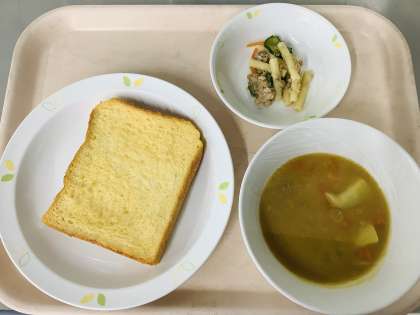 はちみつフレンチトースト カレーシチュー ツナサラダ 牛乳