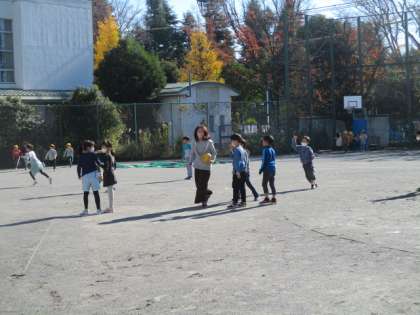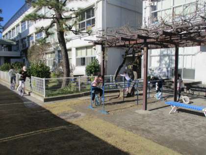 今日の校庭の割り振りは、1年生と2年生です。校庭で元気に遊んでいます。ボール遊び、おにごっこ、なわとび、一輪車、久しぶりの校庭遊びでみんな楽しそうです。