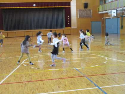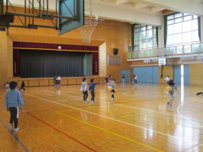 校庭では6年生がボール遊びに夢中になっていました。体育館では1年生が、おにごっこやボール投げなどで楽しそうに走り回っていました。