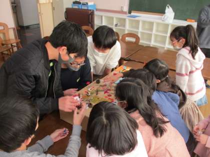 1年生の考えた遊びに、6年生も大きな声をあげ、楽しんでいました。その様子を見て、1年生も嬉しそうです。