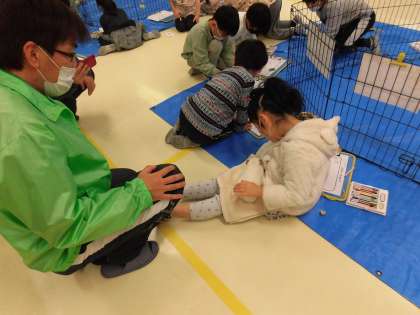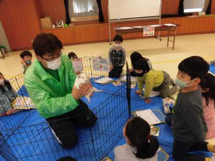 本日の3・4校時は、1年生の移動動物園体験学習でした。1年生はモルモットです。