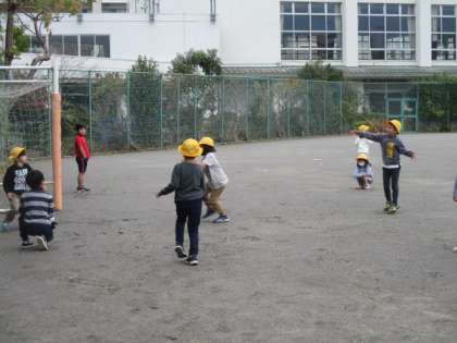1年生、2年生が校庭で遊び始めると、雨がぽつぽつと降ってきました。残念ですが、外遊び中止です。放送が入ると、子どもたちは一斉に教室にもどっていきました。