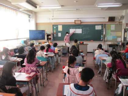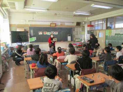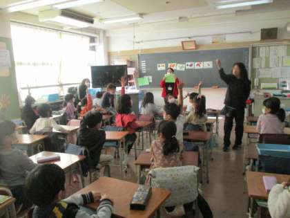 1組の授業は外国語でした。ALTの先生に発問を繰り返したり、英語で返答をしたりしました。ALTの先生にいきなり、Do you like mushroom? と、聞かれた時には、恥ずかしながら、どきまきしてしまいました。子どもたちに、「校長先生、顔、真っ赤になってるよ。」と、言われてしまいました。