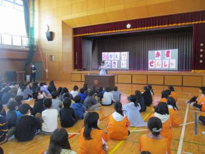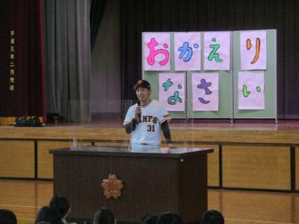 池尻小学校の卒業生 読売巨人軍の赤星優志選手が、池尻小学校にやってきました。
