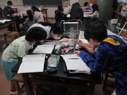 各自、家から持ってきたものが水に溶けるかを調べています。