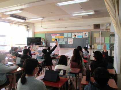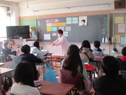養護教諭が保健指導を行い、その後発育測定を行う「すこやかタイム」が6年生でありました。テーマは「エイズについて知ろう」です。あまり縁のない病気ですが、子どもたちは真剣に話を聞いていました。発育測定では、自分の身長の伸びを確かめ、嬉しそうな表情を浮かべていました。
